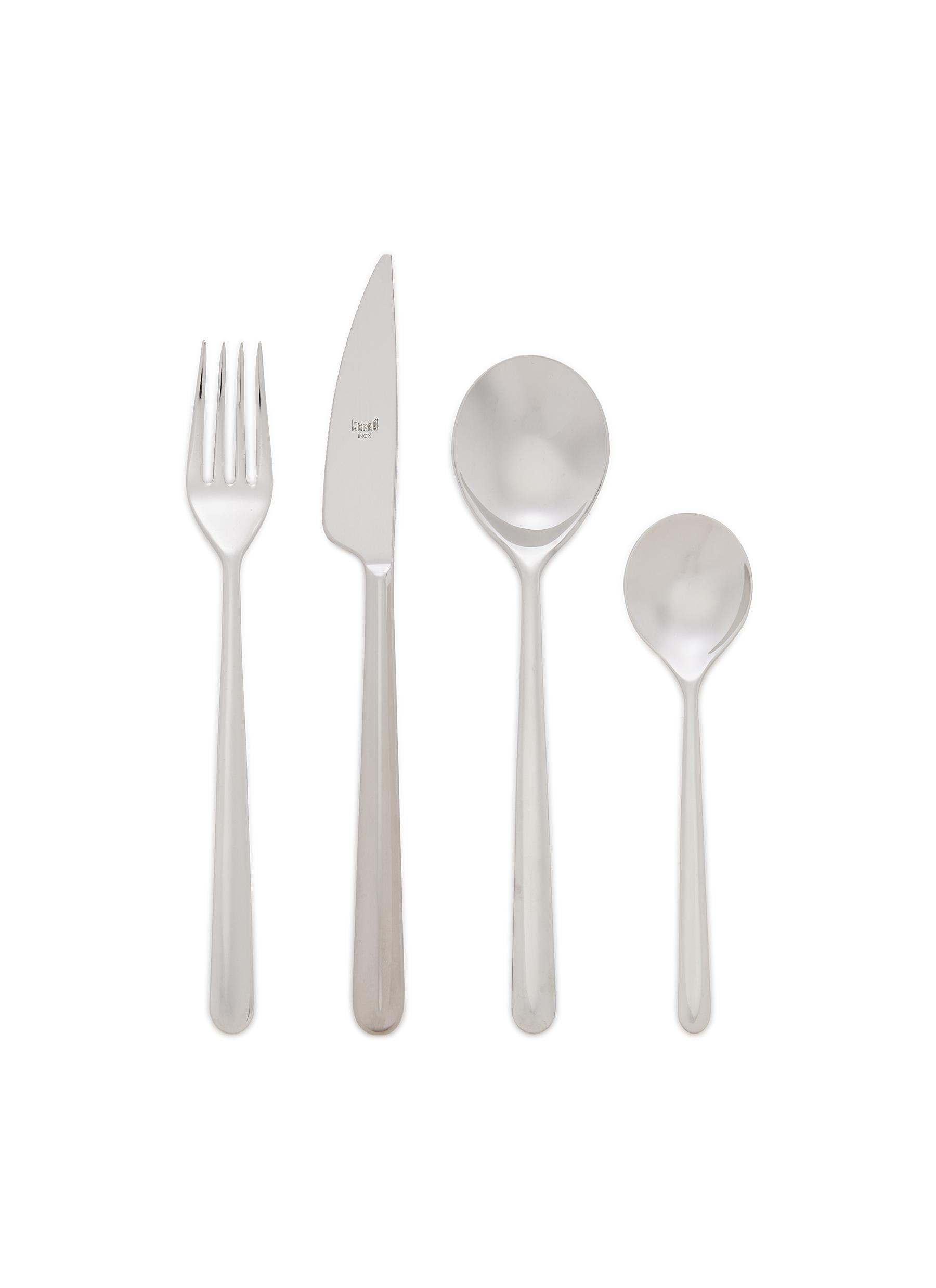 Cutlery Stainles steel linea SHINNY SILVER+WOODEN BOX