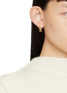 Dive into the depths of style with Eliou's earrings. These intriguing earrings feature a sleek, elongated fish design, beautifully crafted in gleaming gold plating. Perfect for adding a whimsical yet elegant touch to any look, these earrings are sure to catch the eye and spark conversations. Ideal for the fashion-forward individual with a love for distinctive, nature-inspired accessories.