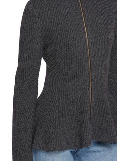 Indulge in the sophistication of Alaïa with this exquisite grey zippered jacket. Crafted from sumptuous knit fabric, this jacket offers both warmth and a flattering fit with its structured silhouette and peplum hem. The high-neck collar and central zip fastening provide both style and practicality, allowing for versatility in styling. This piece is perfect for those seeking to combine elegance with comfort, making it an ideal choice for both office settings and evening outings.