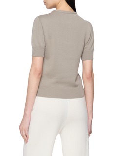 A refined everyday piece elevated by subtle eccentricity, this short sleeve knit is crafted from a soft cotton–cashmere blend that feels light yet indulgent against the skin. The mismatched button placket adds a quiet point of interest, making it an effortless choice for polished daytime looks or understated evening layering.