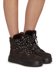 Effortlessly merging mountain heritage with modern sophistication, the Antwerp boots are crafted from velvety suede and lined in plush shearling for warmth and comfort. Finished with hiking-inspired laces and a tonal platform sole, they bring utilitarian refinement to winter wardrobes.