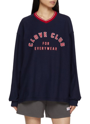 Cut from breathable cotton mesh, this relaxed rugby shirt from Clove channels a distinctly sporty, collegiate mood. A contrast V-neck trim adds energy to the silhouette, while the arched varsity graphic enhances its athletic character. An easy, laid-back piece that pairs effortlessly with shorts, denim, or sweats.