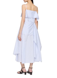 Balancing structure and fluidity, this maxi dress from EENK is defined by a slanted neckline and softly layered panels that move with ease. Fine stripes elongate the silhouette, while asymmetric draping lends a composed yet expressive mood, suited to refined daytime occasions or relaxed summer evenings.