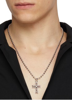 Add a touch of spiritual elegance to your jewelry collection with this Emanuele Bicocchi necklace. Crafted from sterling silver, it features a string of meticulously polished beads leading to an ornate cross pendant. The detailed engravings on the cross enhance its visual appeal, making it a standout piece.