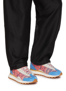 Embrace a vibrant fusion of fashion and functionality with these FLOWER MOUNTAIN sneakers. Featuring a captivating woven pattern in hues of pink and blue, complemented by soft suede panels, these shoes offer both visual appeal and durability. The perforated details enhance breathability, while the cushioned footbed and robust rubber sole ensure comfort and support for all-day wear.