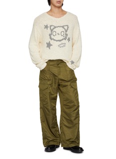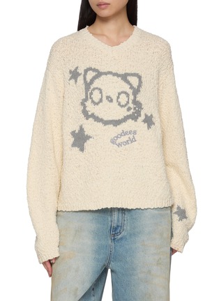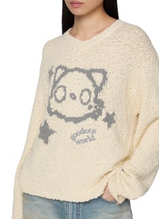 GOODBAI celebrates playful sophistication, blending whimsical details with timeless silhouettes. This piece features a cat intarsia and a relaxed fit to elevate your streetwear-inspired looks with a charming flair.