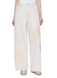 Softly faded and playfully detailed, these straight-cut trousers showcase GOODBAI’s signature graphic language through scattered character and star motifs. Balanced by a clean, structured silhouette, they offer an easy way to offset sweet illustration with everyday practicality—style with simple knits or relaxed shirting.