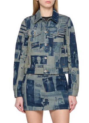 JEAN PAUL GAULTIER Newspaper Print Point Collar Cotton Denim Jacket