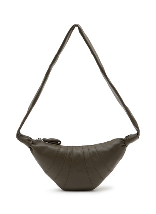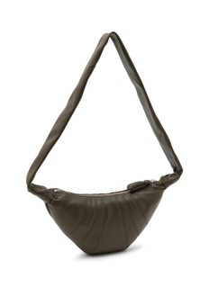 Introducing LEMAIRE's Soft Croissant crossbody bag, a true embodiment of French flair. Crafted with meticulous attention to detail, this bag features a curved silhouette reminiscent of a delectable croissant, channeling a touch of French sophistication with your flowy dress and Mary Jane shoes.