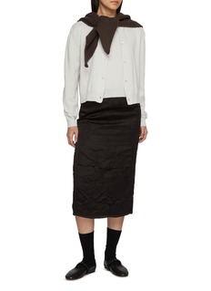 Light as a whisper against the skin, this cardigan is spun from pure cashmere to embody Nackiyé’s understated elegance. Mother-of-pearl buttons trace a clean line through the front, while softly ribbed trims and the embroidered ‘N’ hallmark lend a quiet signature. Ideal layered over dresses or worn alone as a refined knit top.