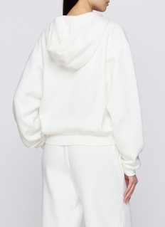 Effortless comfort for every day. This dreamy zip-up hoodie is crafted with SKIMS' signature, plush fleece and a smooth embossed logo on the left sleeve above the cuff. This classic fit pullover features a front kangaroo pocket and ribbed details on the cuff and hem.