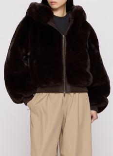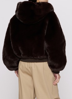 Make a soft, cosy statement. This faux fur zip-up jacket combines a smooth, satin lining with chic faux leather trim details. Front welt pockets keep you warm while ribbed details at the cuff and hem add an elevated finish.