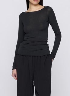 Your most elevated lounge top. Sheer with a fitted silhouette, this chic style keeps you comfortable with its incredibly soft and stretchy modal-cashmere fabric. Elevated with a wide boat neck and extra long sleeves.
